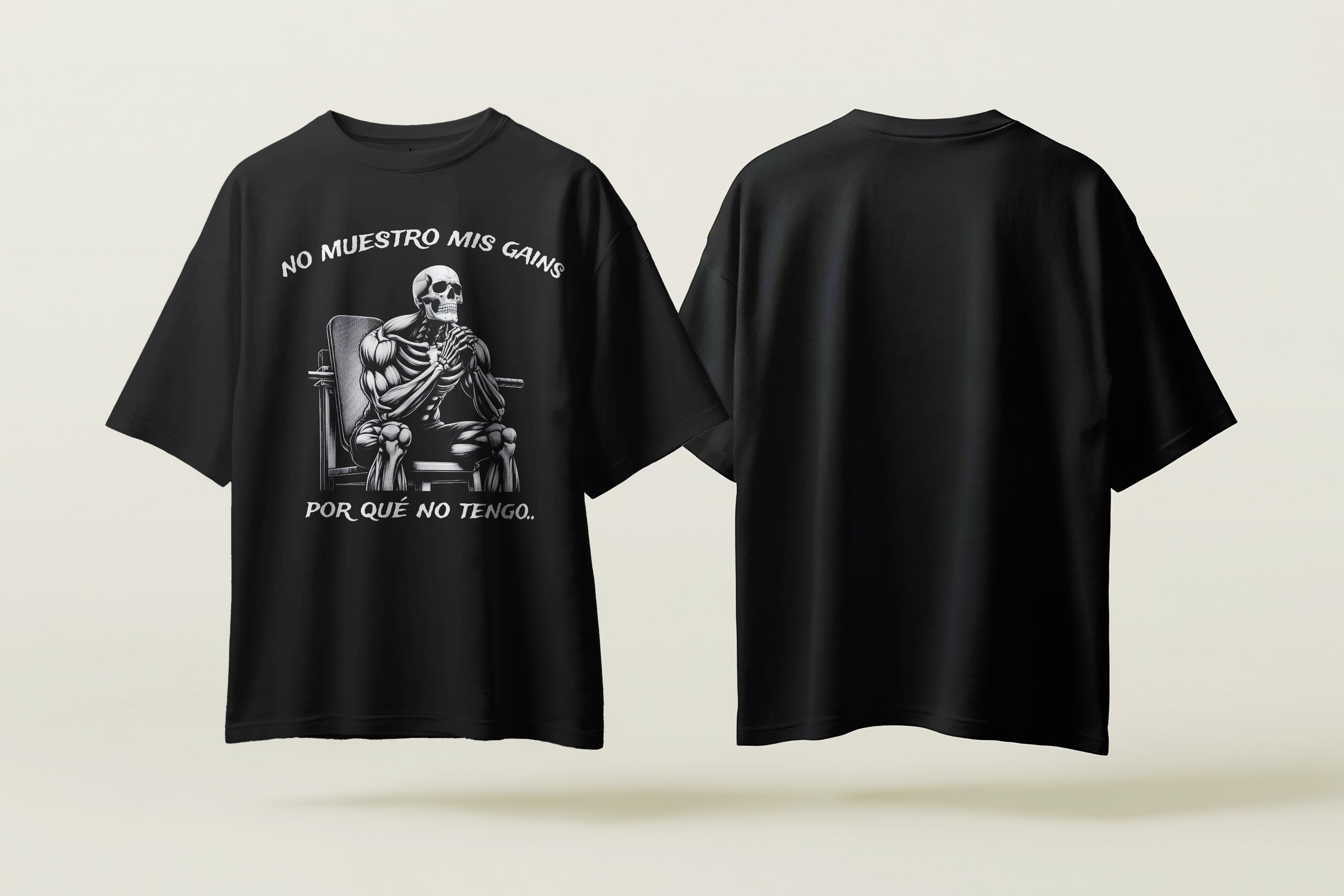 Diseños basados en memes de esqueletos y gimnasio, con humor y estética street.